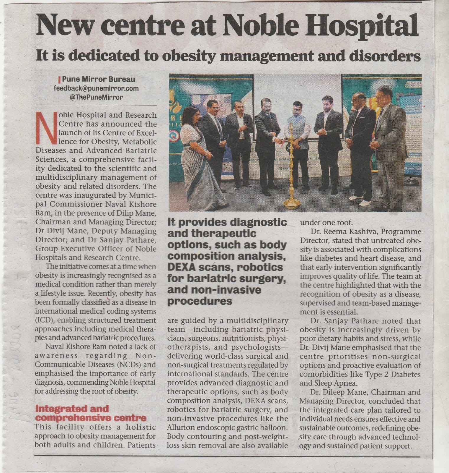 Noble Hospital's Centre of Excellence for Obesity, Metabolic Diseases, and Advanced Bariatric Sciences Sets New Benchmark in Pune's Healthcare Landscape